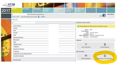 Chaque licencié s'inscrit sur le site de la FFTA rubrique formation / Mes informations personnelles / S'inscrire à une formation, sélectionner